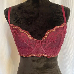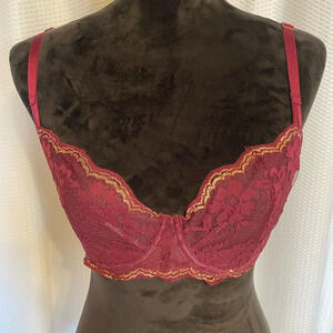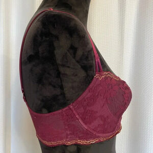 Victoria’s Secret Dream Angels Burgandy lace push-up w/o padding bra size 32DDD