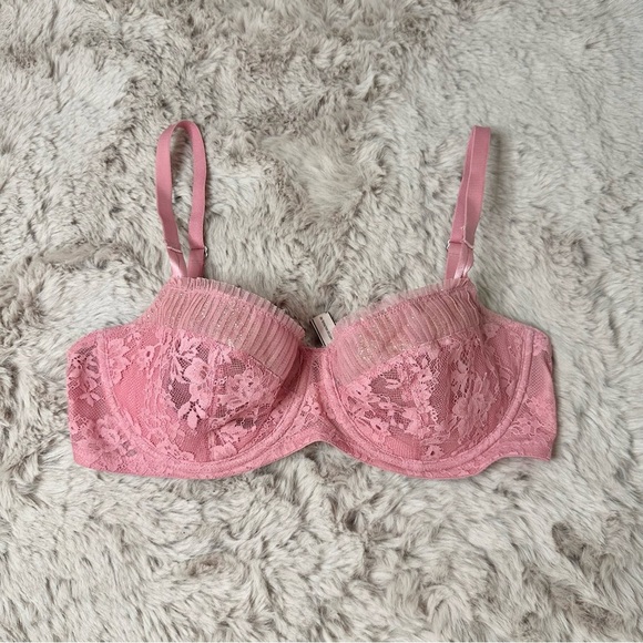 Victoria's Secret Dream Angels Cherry Blossom Pink Lace & Glitter Wired Bra