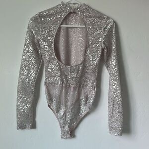 Victoria's Secret Dream Angels Lace Bodysuit Teddy Pink Silver Size Small NWT