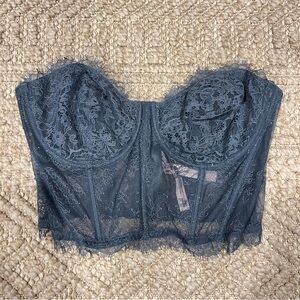 Victorias Secret women’s size 36D Dream Angels lace bustier corset bra top in dusty blue