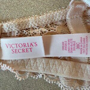 Victoria's Secret Dream Angels Lined Demi Bra 38C Cream Peach Lace 298721-G63