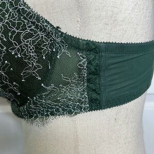 Gorgeous Forest green Bra with lace overlay and floral stitching and small rhinestone sparkly accents