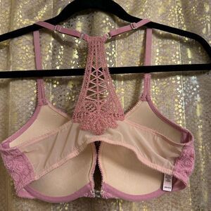 Victorias Secret Dream Angels Mauve Pink Lace Racerback Front Clip Bra 32D