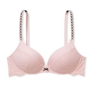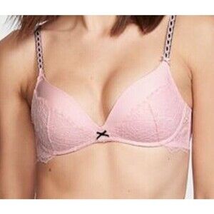 Victoria's Secret Dream Angels Padded Wireless Lined Demi Bra Pink Black Sz 36DD
