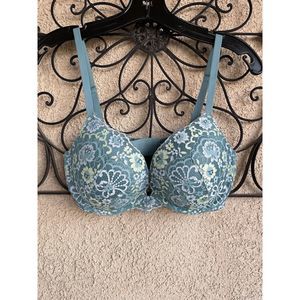Victorias Secret Dream Angels Push Up Bra - Size 34D - Teal Blue/ Yellow