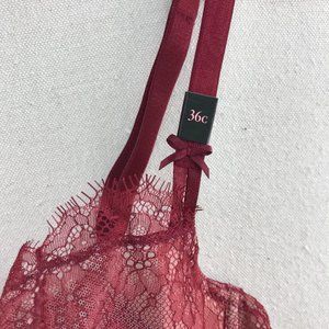 Gorgeous wine/burgundy colored lace Dream Angels Push-Up Without Padding Bra size 36C, New with tags. Never worn. Beautiful and sexy! Great for Valentine's day!