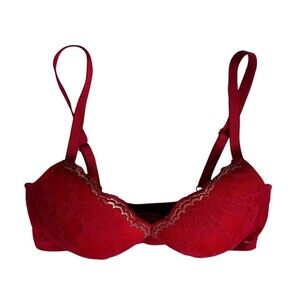 Victoria's Secret Dream Angels Push-up Red Lace Bra with Gold Trim Size 32DD