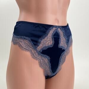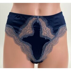 Victoria's Secret Dream Angels Satin Lace Trim Navy Blue Brazilian Slip Size S
