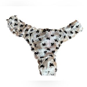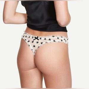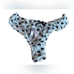 Victoria’s Secret Dream Angels Thong Large White Ruffle Mesh Black Bows NWT