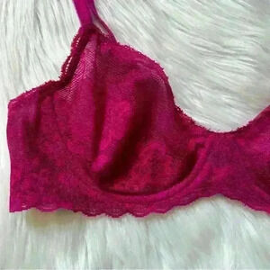 Dark pink/ magenta vibes. Underwire. Hook & eye closure, 2 hooks and 3 different size closures. No flaws.