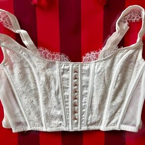 Victoria's Secret Dream Angels Unlined Lace-Up Corset Bustier Top in White L NWT