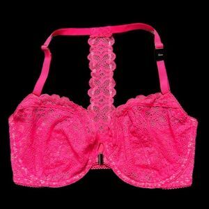Victorias Secret Dream Angels Unlined Demi Underwire Racerback Lace bra Pink