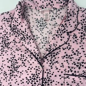 Victoria's Secret Dreamer Flannel Long Pajama Set Babydoll Tiny Hearts - XXL