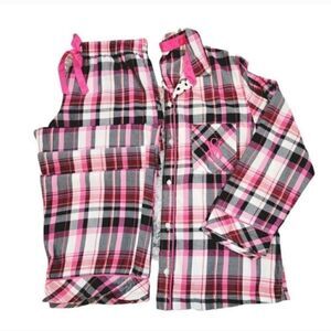 Victoria's Secret Dreamer Pink and Black Plaid Flannel Pajama Set Size Small