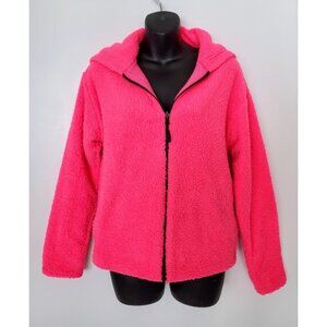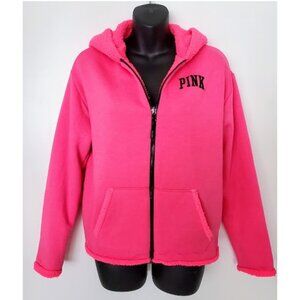 Victoria's Secret EUC PINK Reversible Fleece Sherpa Hoodie Zip Jacket Size XS