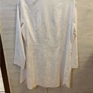 • It is characterized by its tie-front closure and a subtle tone-on-tone paisley pattern.