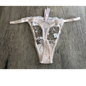 Victoria's Secret Embroidered Floral Nude and White Pearl Accented Lace Thong XL