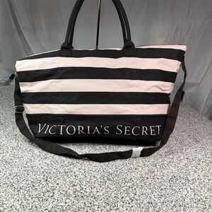 Victoria's Secret Expandable Weekender Tote Bag Pink/Black Stripe