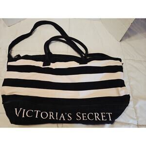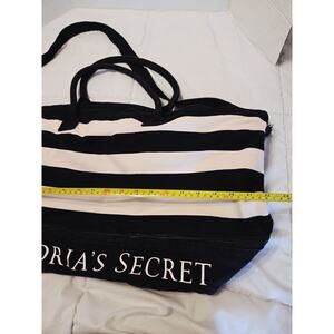 Victoria's Secret Expandable Weekender Tote Bag Pink/Black Stripe Shoulder Strap