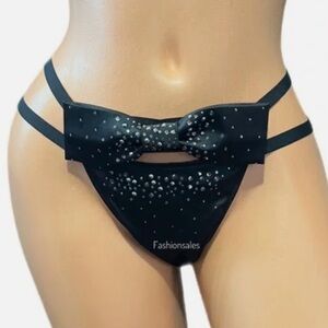 Victoria’s Secret FASHION SHOW LONDON 2014 Satin Bow Crystals Thong Sz M Panty