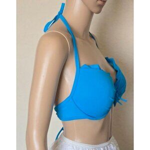 Victoria's Secret Fabulous Push Up Bikini Top blue Ruffle halter.
