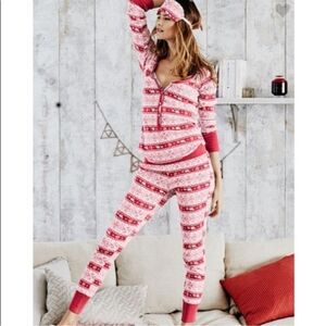 "Stay cozy and stylish all night long with this Victoria's Secret Fair Isle Thermal Henley pajama set.