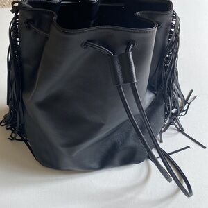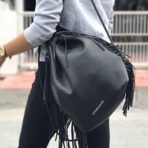 Victoria's Secret Fashion Show Fringe Faux Leather Tassel boho Backpack in Black