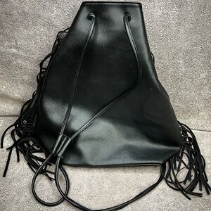 Victoria’s Secret Faux Pebbled Leather Fringe Bucket Cinch Backpack Purse Biker