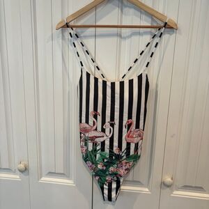 Victoria’s Secret Flamingo Striped One Piece Swimsuit Size Large