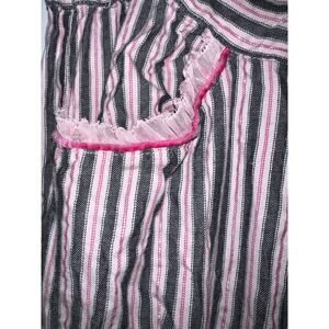Soft brushed fleece; material has metallic through it and lace accent pockets. Drawstring makes them adjustable. smoke free pet friendly home
