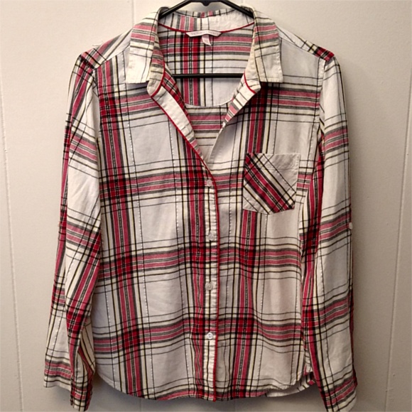 Victoria's Secret Dreamer flannel button down pajama shirt. Plaid pattern with shine detailing.