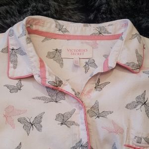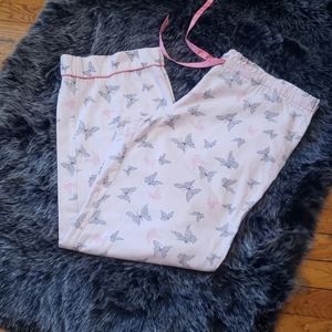 Victoria's Secret Flannel Sleep Set L Long Pink Butterfly