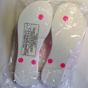 Brand new still in package! Received from online order. Pink and white striped flip flops in size S: fits shoe size 5-6. I'm a 7 and they ran out of my size, that is why I'm selling. Does NOT come with tote, but you can bundle with the striped bucket bag for 10% off!