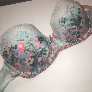 Beautiful VS Floral/Multicolored/Lace Demi Bra. Size 34C. Gently used- worn maybe 4 times. In excellent condition and super cute! ****Marked this down from $20 to $16 if anyone is interested!!!****