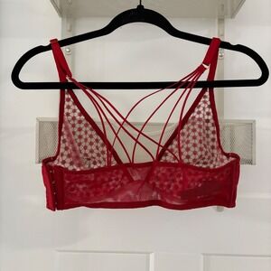 Victoria's Secret Floral Embroidered Sheer Red Lace Strappy Bra 36C Lingerie