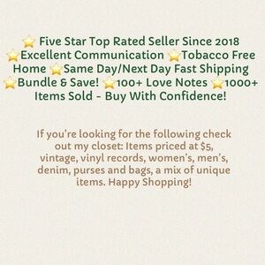 ⭐️Five Star Top Rated Seller ⭐️Excellent Communication ⭐️Tobacco Free Home ⭐️Same Day/Next Day Fast Shipping ⭐️Bundle & Save! ⭐️100+ Love Notes