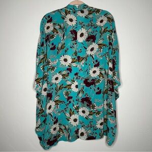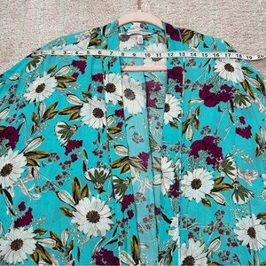 Elegant teal kimono with floral pattern. Lightweight and stylish.