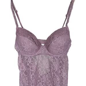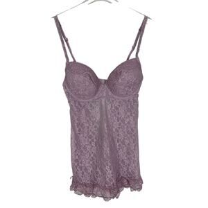 Victoria's Secret Floral Lace Babydoll Lingerie Romantic Coquette Purple Sz 36C