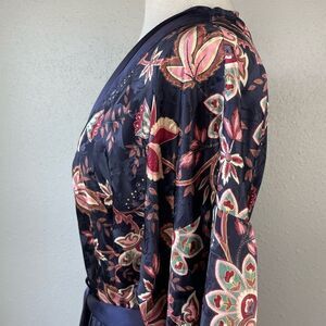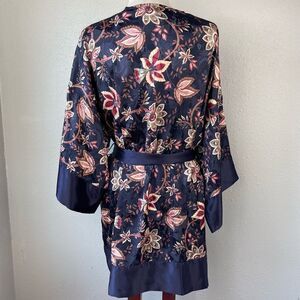 Silky soft and light weight robe measuring 24 inches armpit to armpit when closed and 34 inches in length from shoulder to hem.