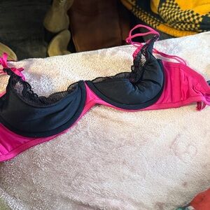 Elegant fuchsia bra with black lace detailing. Offers both style and comfort.