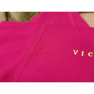 Gorgeous bright pink vibrant color. There is no fading. Victoria's Secret written in gold on back. There are 2 tiny holes in back from a tag (pictured)