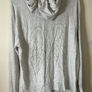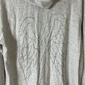 Victoria’s Secret Full Zip Gray Hoodie Rhinestone wings on back Size Large