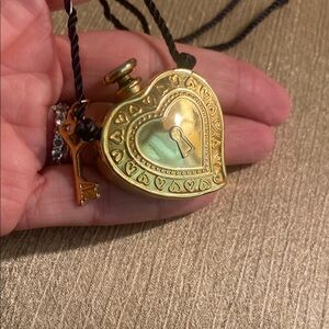 Victoria's Secret Gold Heart Locket Necklace with Key Charm