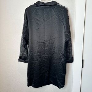 Victoria’s Secret Gold Label Black Satin Sheer Lace Button Front Nightgown S