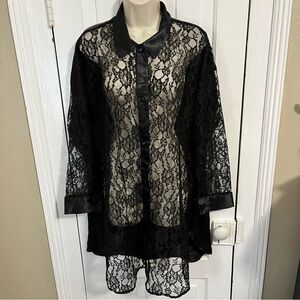 Victoria’s Secret Gold Label Deadstock Lace Black Button Front Blouse M/L P2