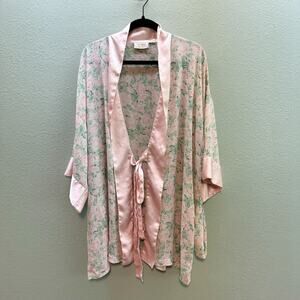 Victoria's Secret Gold Label Pink + Green Floral Satin Trim Tie Front Robe - OS