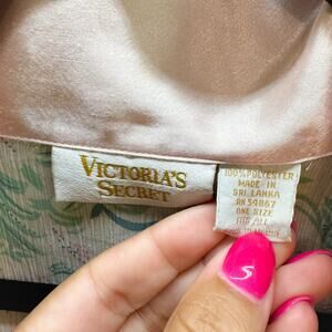 Victoria's Secret Gold Label Pink + Green Floral Satin Trim Tie Front Robe