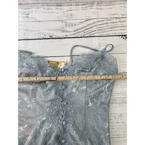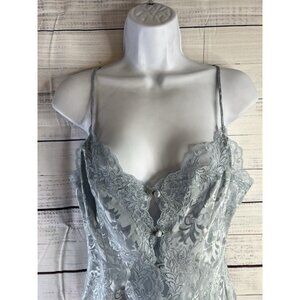 Victoria's Secret Gold Label Vintage Medium Blue Satin Button Lace Camisole Y2K