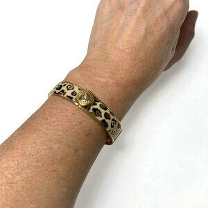 Victoria's Secret Gold Leopard Print Hinged Bracelet With Crystal Accent 2.5"