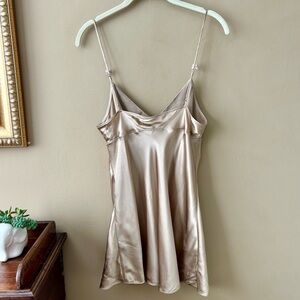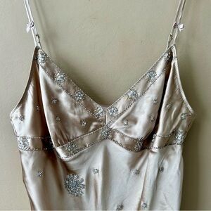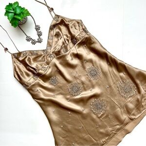 Victoria's Secret Gold Tan Silk Beaded Sequin Cami Spaghetti Strap Baby Doll Top